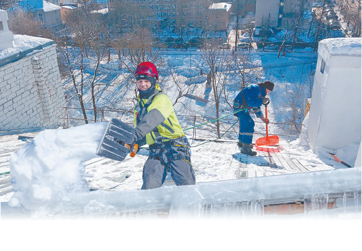Снега в этом году навалило столько, что работников по очистке крыш нужно было в разы больше, чем прежде. Но за такую работу берется не каждый. Она уникальна и эксклюзивна.