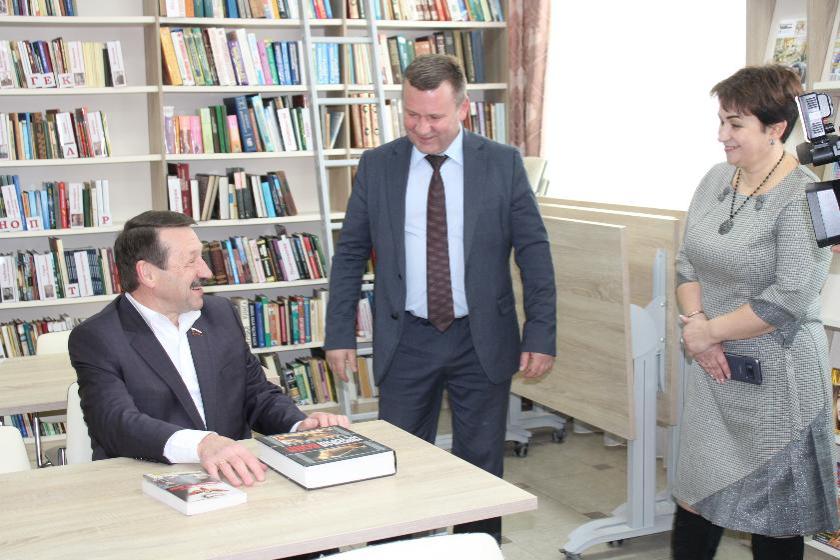 Геннадий Иванович отметил высокий уровень организации пространств и важность развития сразу нескольких направлений работы. Во время беседы с директором библиотеки Надеждой Кочетковой он поинтересовался, какими книгами располагает учреждение культуры.