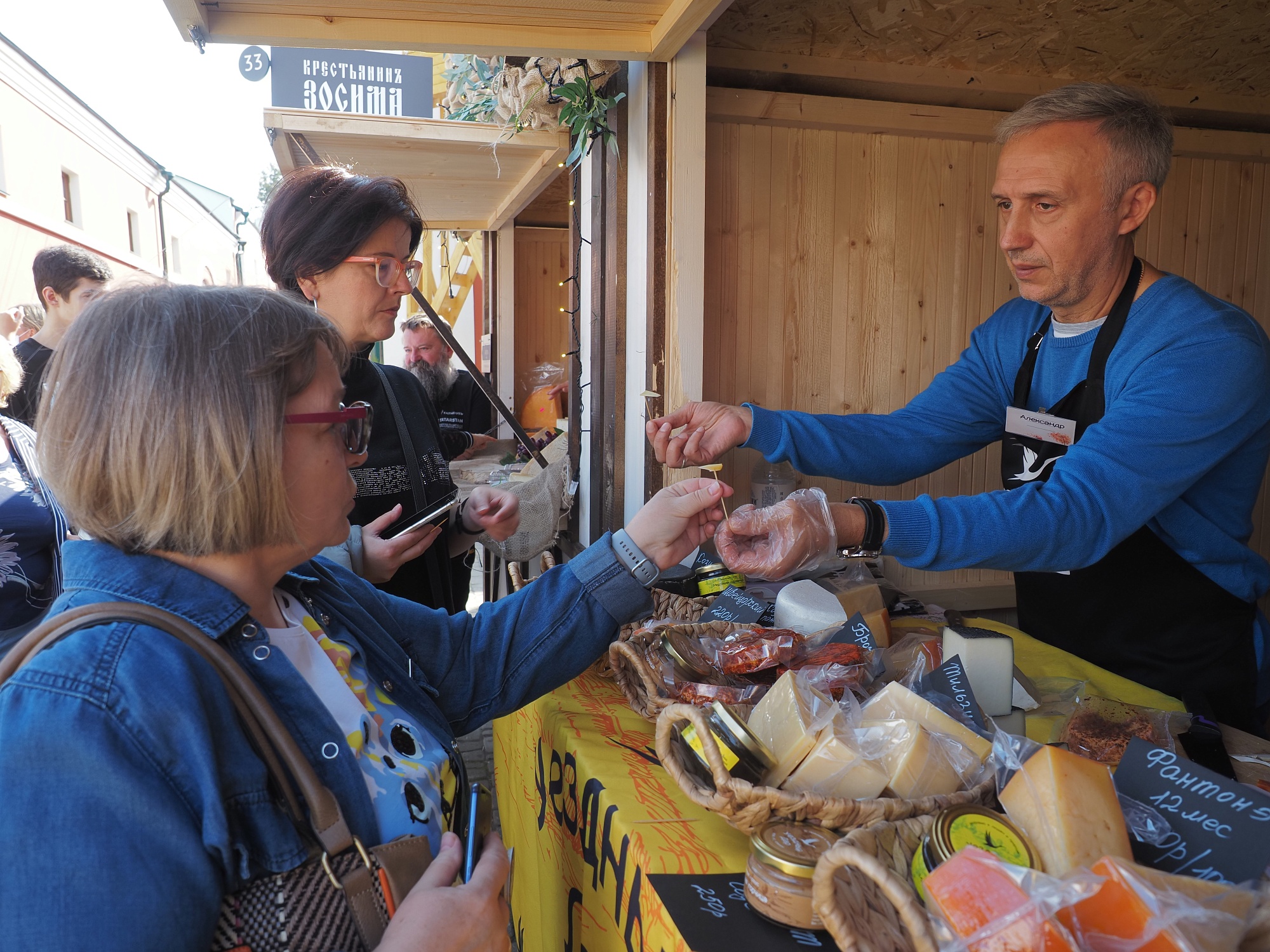 Все три дня погода благоприятствовала сырным торгам. Посетители перед покупкой обязательно дегустировали сыры: кому-то больше нравились мягкие козьи или овечьи, кто-то предпочитал выдержанные сыры из коровьего молока. Помимо традиционной продукции покупателям предлагались также сыры с пажитником, грецкими орехами, базиликом, перцем, голубой и белой плесенью… Кроме сыров здесь была представлена разнообразная молочная продукция. Самое главное, что такие вкусные продукты невозможно купить ни в одном калужском магазине - только на фестивале. Зная об этом, калужане активно шли в Гостиные ряды за покупками.
