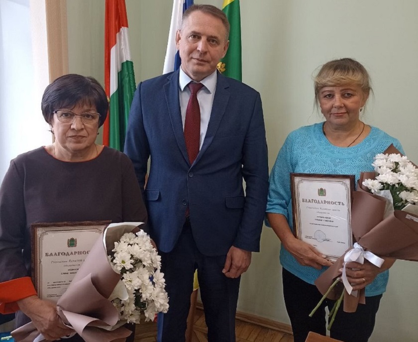 Глава районной администрации Владислав Поляков, вручая им Благодарности Губернатора области, поздравил своих коллег с заслуженными наградами.