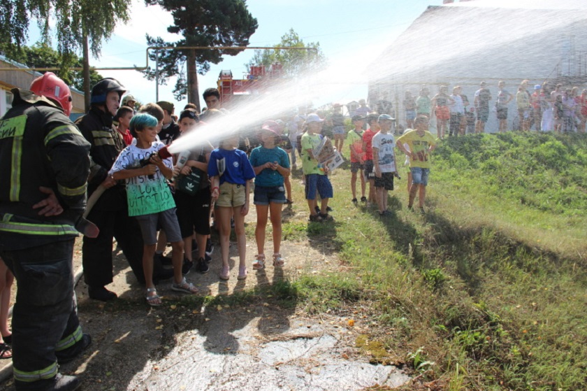 В завершении встречи сотрудники 34-й пожарной части рассказали детям об оснащении пожарного автомобиля, а также порадовали отдыхающих свежестью в жаркий летний денек, окатив их «пожарным дождем» из брандспойта.