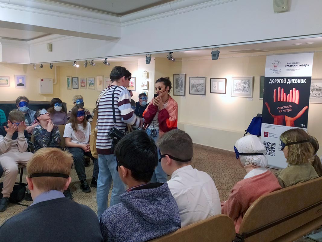 Действие скрывают от зрителей текстильные маски, которые выдаются перед началом спектакля. Такой режиссерский ход - не авангард и не дань моде. Спектакль рассказывает о незрячих людях, и цель постановки - не просто донести до зрителей сюжет, а дать им возможность увидеть его внутренним взором. «Дорогой дневник» - так называется постановка московской арт-студии «Мамин театр», которую показали в галерее Дома музыки.