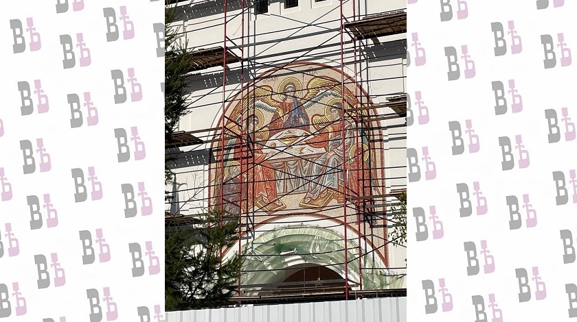 Сюжет «Святая Троица» размером в 22 квадратных метра, выполненный в римской технике, украсил западные ворота в Соборный храм Покрова Пресвятой Богородицы. Над созданием полотна работала команда художников-реставраторов в мастерской выпускника Строгановского Института Василия Фортова. Последнее полотно превосходит размерами своих предшественников, установленных над входами с севера и юга храма.