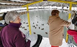 - Купается народ преимущественно в купели, некоторые мужчины прямо в озере. Года три назад здесь первая утка появилась – улететь, видно, не могла. Её подкармливали все. С одной стороны, мы рады, что они здесь. В озерах много было водорослей. Их мужчины вилами вытаскивали. А утки все поели. Им тут живётся вольготно. На днях 130 штук насчитали! Но зима кончится, и они улетят.