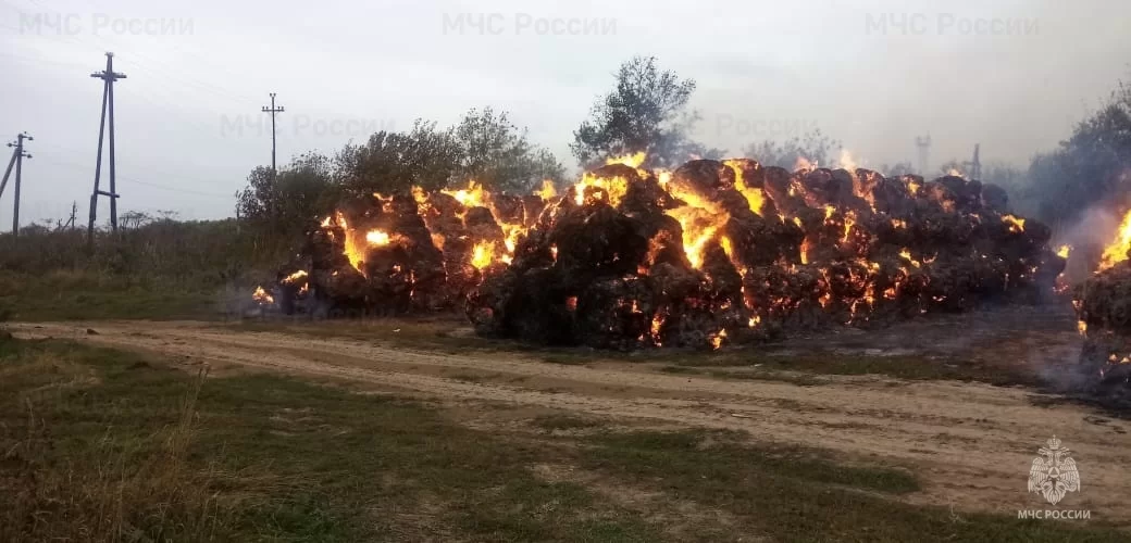 По предварительным данным, из-за возгорания соломы в тюках никто не пострадал. Пожарные оперативно потушили пожар.