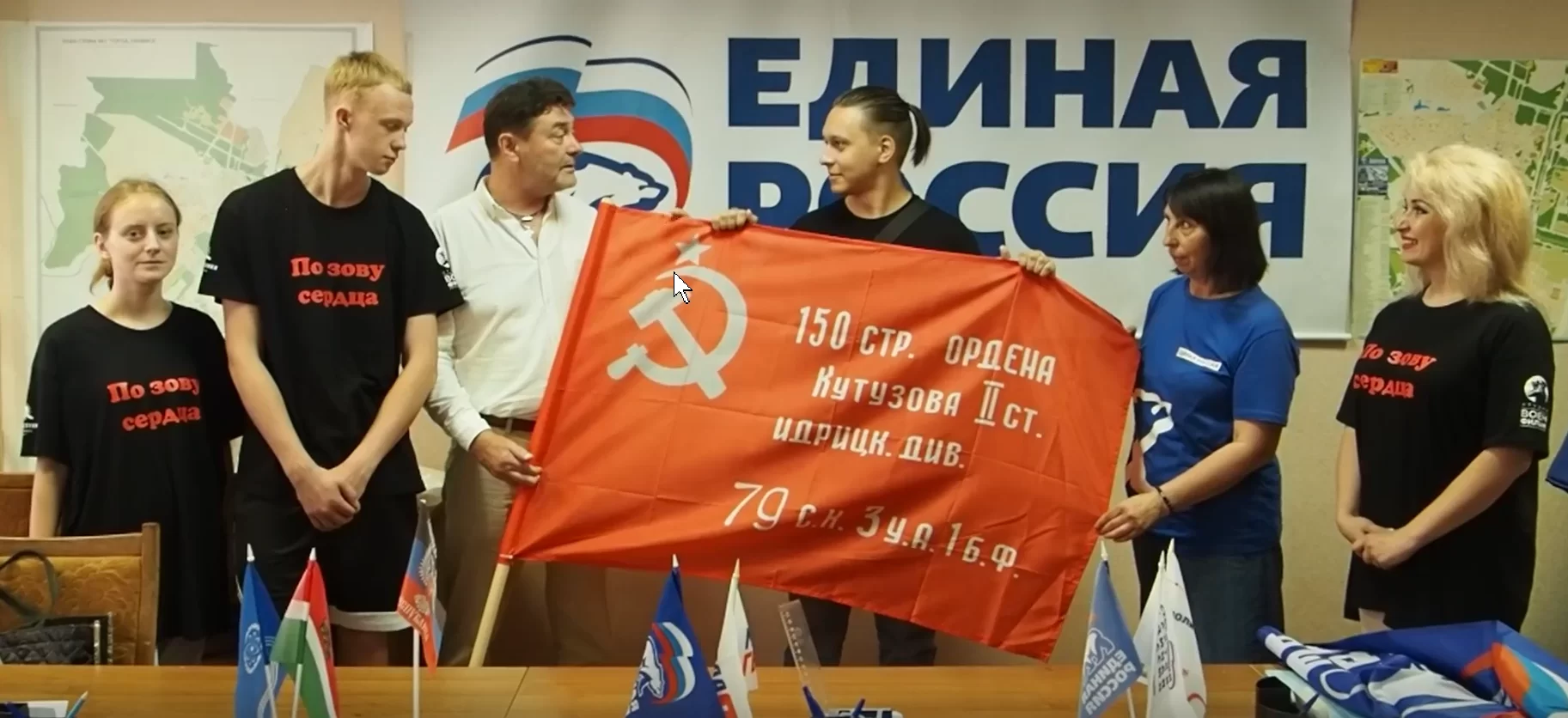 В наукограде гостей принимало местное отделение партии «Единая Россия». В завершение встречи руководитель исполнительного комитета обнинского отделения партии «Единая Россия» Анатолий Шатухин подарил ребятам копию знамени Победы.