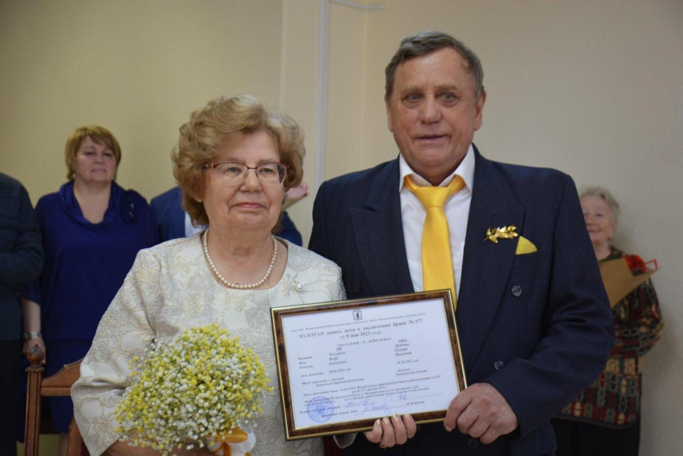 В 2023 году супруги отметили золотую свадьбу. 50 лет — это большой срок, и так незаметно он пролетел, как будто это было вчера. Самым лучшим подарком стало то, что в ЗАГСе на поздравлении собрались родные, близкие, друзья, коллеги. Это самое главное богатство для семьи Молотковых. Продолжение торжества было в столовой, где молодожёнов встречали с караваем и шампанским. Осыпали зерном и лепестками роз. Букеты цветов, подарки, поздравления и крики «Горько». Всё как 50 лет назад, это так незабываемо.