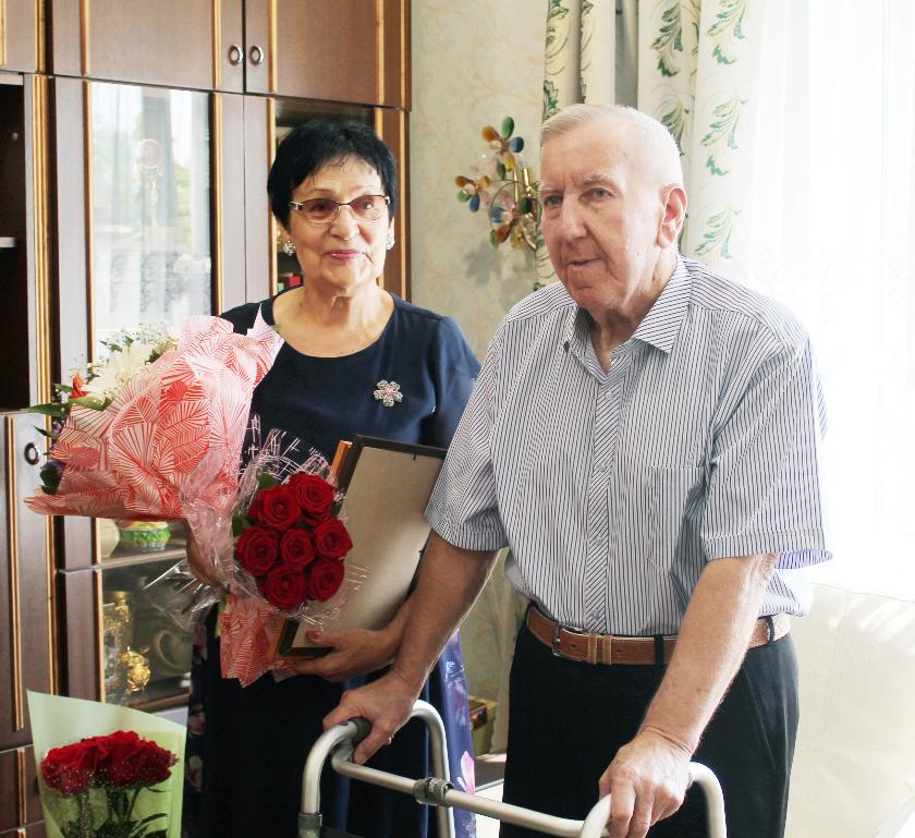 Леонида Алексеевича и Валентину Ильиничну приехали поздравить замглавы администрации района по социальным вопросам Жанна Родина, глава администрации города Геннадий Буденков и заместитель заведующей отделом социальной защиты населения Елена Зубарева. С самыми теплыми и искренними словами поздравлений и пожеланий гости передали виновникам торжества поздравления от главы региона, глав районной и городской администраций и памятные подарки.