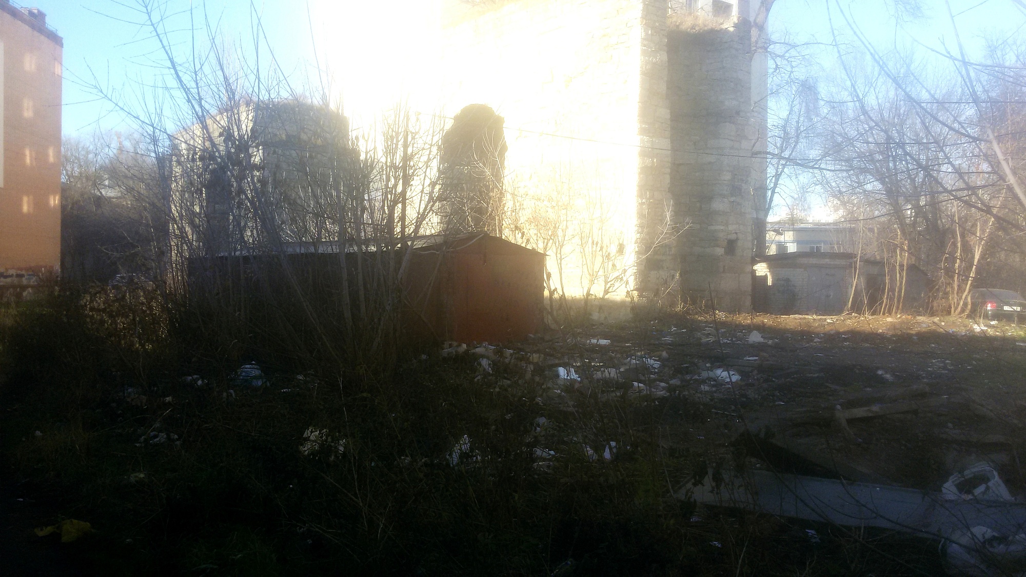 Здесь буйные заросли крапивы и репейника, других сорняков в рост человека, кустов, борщевика. Валяются обломки от снесённых металлических гаражей, бетонные конструкции. Асфальтовая дорожка, ведущая к школе № 19 и жилым домам, растрескалась, всегда замусоренная, и сорняки цепляются за одежду. А по этой дорожке школьники ходят в школу. В тёмное время (а зимой с утра у нас всегда темно) не всех детей могут проводить родители. Освещения здесь нет, можно напугаться, можно даже сломать ноги.