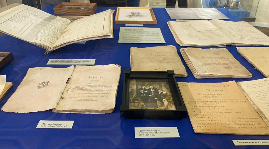 В музейно-краеведческом комплексе «Усадьба Золотаревых» в голубой гостиной в Калуге открылась выставка, посвящённая жизни и творчеству драматурга. На выставке можно увидеть рукописи пьес Соловьёва и книги, изданные при его жизни, также представлены подлинные документы, принадлежавшие Николаю Яковлевичу.