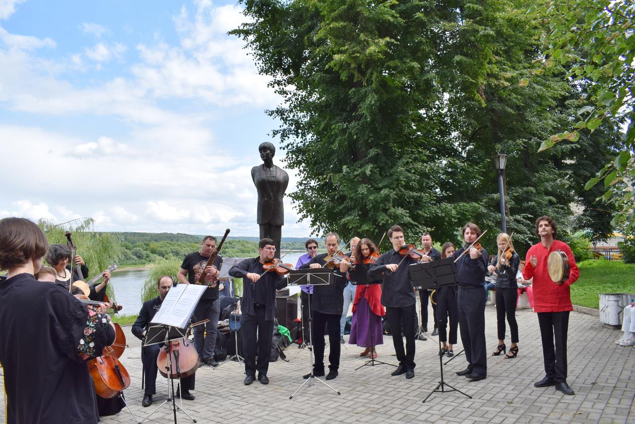 Удивительным подарком городу за несколько часов до открытия фестиваля стало совместное выступление камерного оркестра Тарусы под управлением Ивана Великанова и ансамбля духовых инструментов «L’esprit du Vent» («Дух Ветра») Филиппа Ноделя. В городском парке у памятника Белле Ахмадулиной звучала «королевская музыка французского двора» эпохи барокко. Под сенью деревьев, наполненные речным воздухом, произведения Генделя, Куперена и Гайдна светло и торжественно лились над Окой. Музыку королей, прекрасную, как старинная легенда, исполняли в аутентичной манере.Концерт продолжился на кораблике, отчалившем от пристани: на нем музыканты отправились по реке в музей-заповедник «Поленово», где состоялся их концерт в рамках фестиваля «Век музыки в усадьбе Поленово». Именно музыка соединила в этот день два берега: в Поленове всегда говорят, что чувствуют с Тарусой, городом, который любил знаменитый художник, особую, родственную связь.