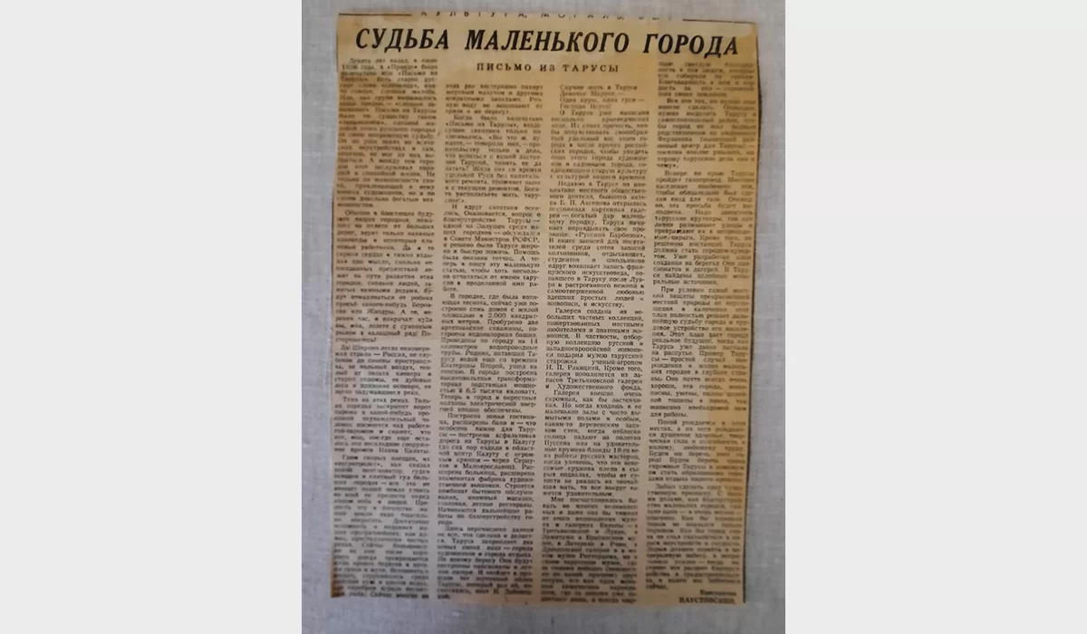 Все эти беды Паустовский прямо, не побоявшись, что его обвинят в «выносе сора из избы», описал в своем знаменитом «Письме из Тарусы». Оно было впервые опубликовано в центральной газете «Правда» в июне 1956 года. И произошло то, что сегодня можно назвать настоящим чудом. Сила печатного слова, авторитет уважаемого писателя и его искренняя боль о Тарусе как пример «одной из Золушек среди наших городов» были приняты во внимание «на самом верху». Вопрос о судьбе райцентра обсудили на Совете Министров РСФСР! И выделили огромную сумму на его благоустройство.