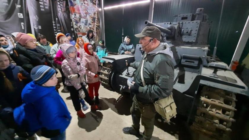 Дети побывали в ангарах, где собрана техника, принимавшая участие в съемках. Это танки, бронемашины, военные автомобили различного назначения, как советские, так и немецкие. В отдельном боксе собрана боевая авиация — самолеты.