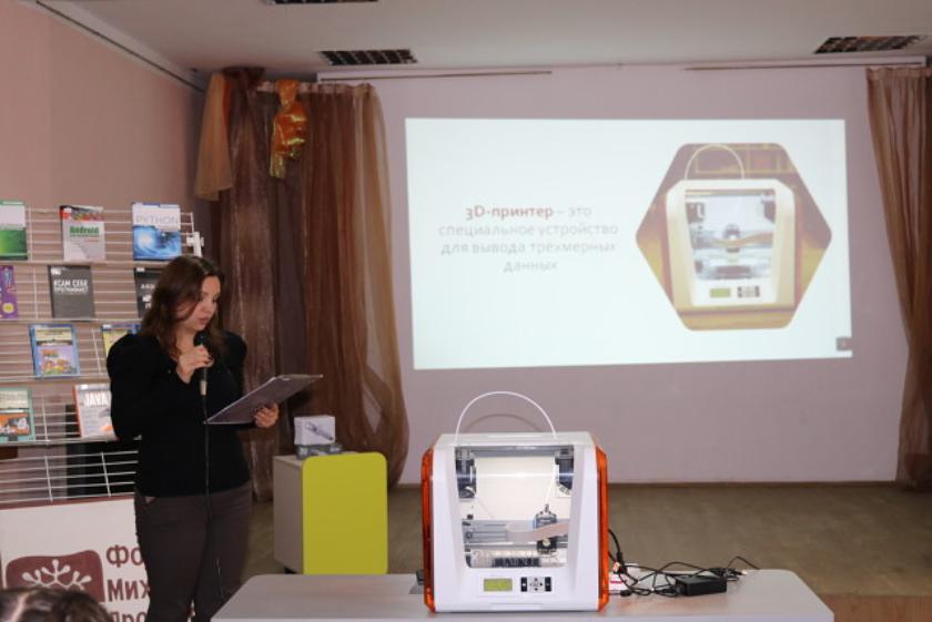 Для реализации творческих замыслов в читальном зале библиотеки создано специальное пространство и установлено новейшее оборудование, с помощью которого теперь каждый желающий сможет получить базовые знания в области информационных технологий и поработать с 3D-принтером, создавая удивительные изобретения. В течение года совместно с квалифицированными специалистами сети компьютерных магазинов «ЛигаВега» совершенно бесплатно здесь запланировано провести 9 занятий и мастер-классов по направлениям: 3D-печать, программирование и видеопроизводство.