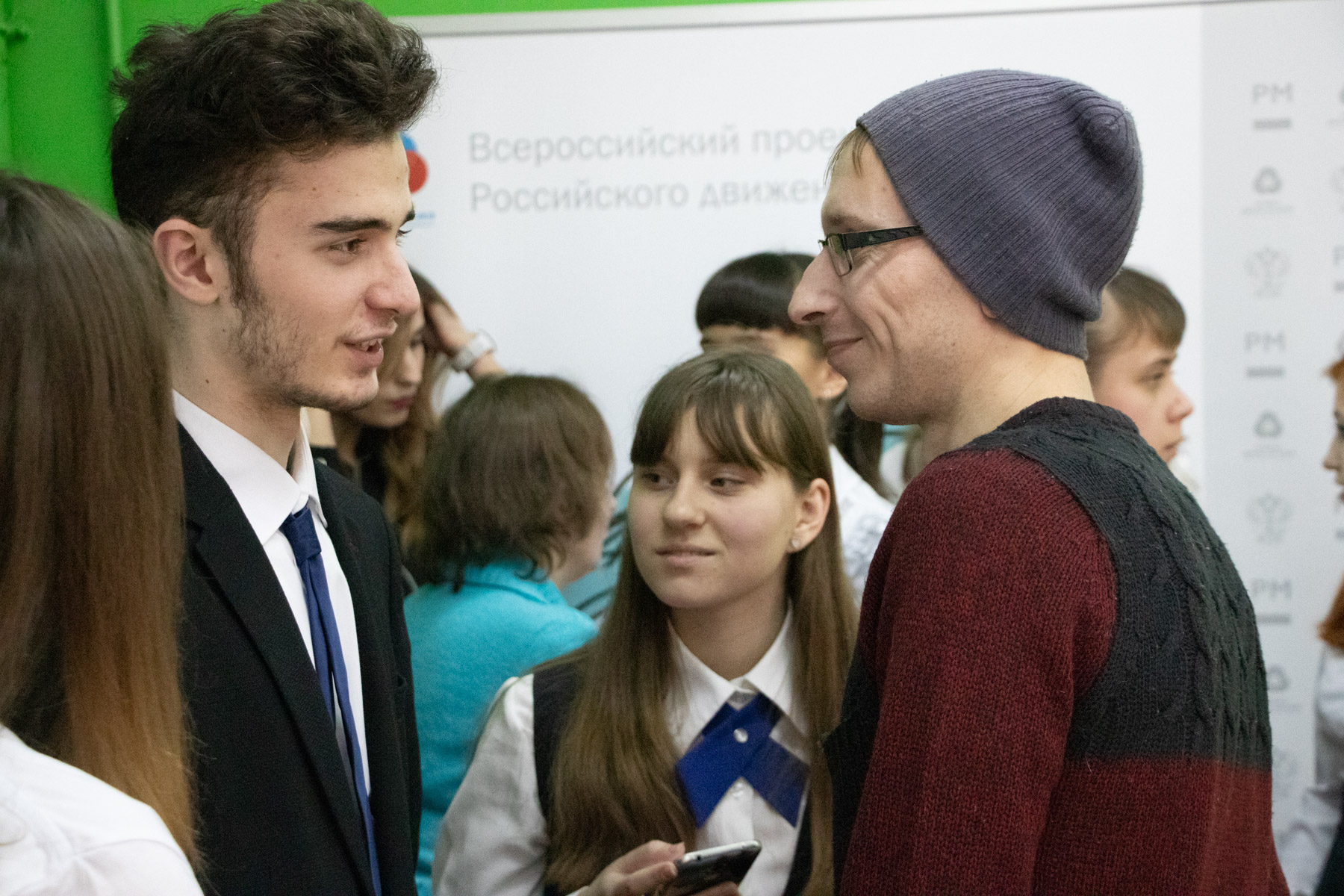Темой встречи стала современная медиасфера. Дмитрий рассказал, как он попал в эту сферу, и о том, что помогает ему комфортно чувствовать себя в профессии. Он призвал школьников участвовать в различных конкурсах и форумах, расширять свой кругозор, интересоваться всем, читать литературу разной тематики.