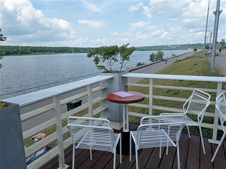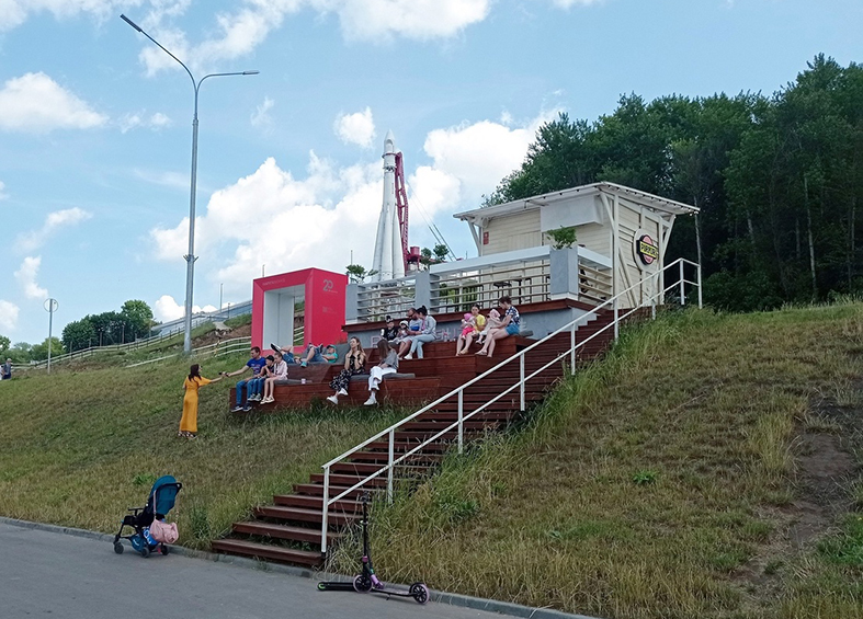 На сегодня эта территория весьма популярна для скейтбордистов, велосипедистов, самокатчиков, любителей кататься на роликах. Кого больше - этих спортивно ориентированных или тех, кто пришел за релаксом, уселся на лавочки и предался созерцанию, сказать трудно. Но похоже, что многие приходят сюда на весь день, кто-то перекусывает в гастрономических киосках, кто-то приносит еду с собой. Здесь нет спешки, здесь все размеренно и каждому свое.