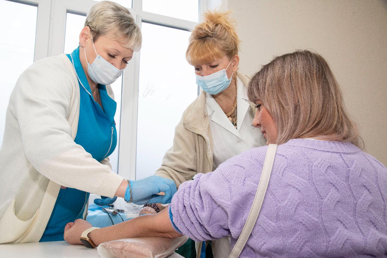 – В нашей клинике впервые проходит такая благотворительная акция. Для нас честь принимать комитет семей воинов Отечества, доноров, сотрудников станции переливания крови. И мы специально отодвинули время приема врачей, чтобы предоставить место для акции, чтобы донорам было комфортно. Надеемся, что такие акции станут регулярными, – прокомментировала происходящее в центре его генеральный директор Ольга Сычева.