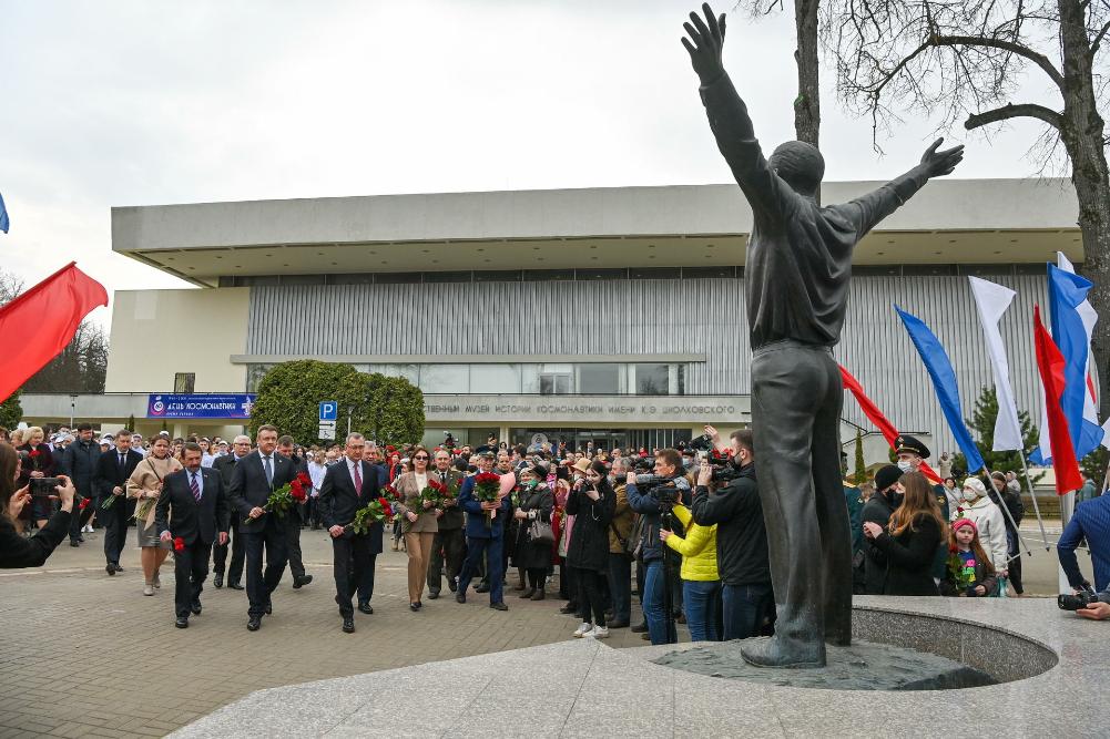 В честь 60-летия первого полета человека в космос 12 апреля в области прошли мероприятия, главным из которых стал торжественный митинг у Государственного музея истории космонавтики им. К.Э.Циолковского, рядом с памятником Юрию Гагарину.Собравшиеся возложили цветы к памятнику Гагарину, а затем к могиле Циолковского.