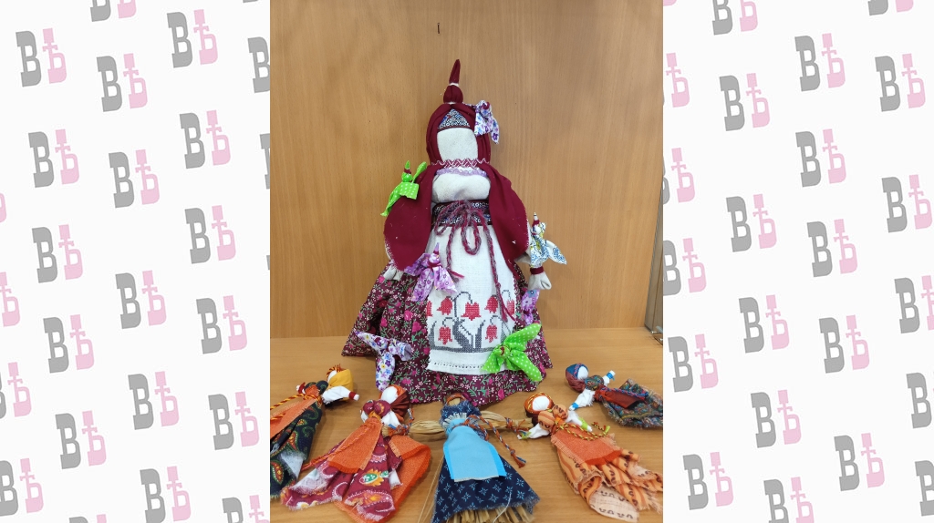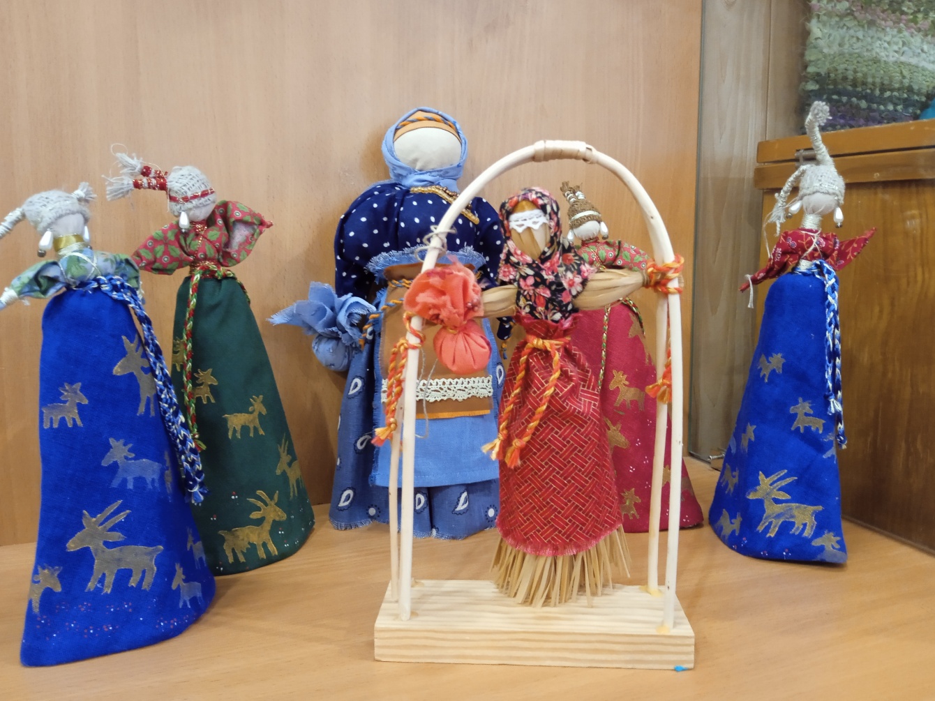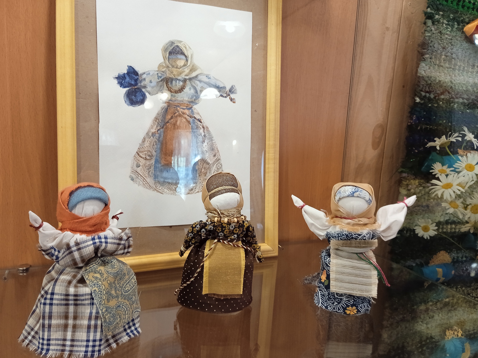 На выставке зрители могут увидеть крестьянскую куклу. Особенность ее в том, что собранная из лоскутков, без применения иголок, она считалась вестницей счастья и благополучия в доме.