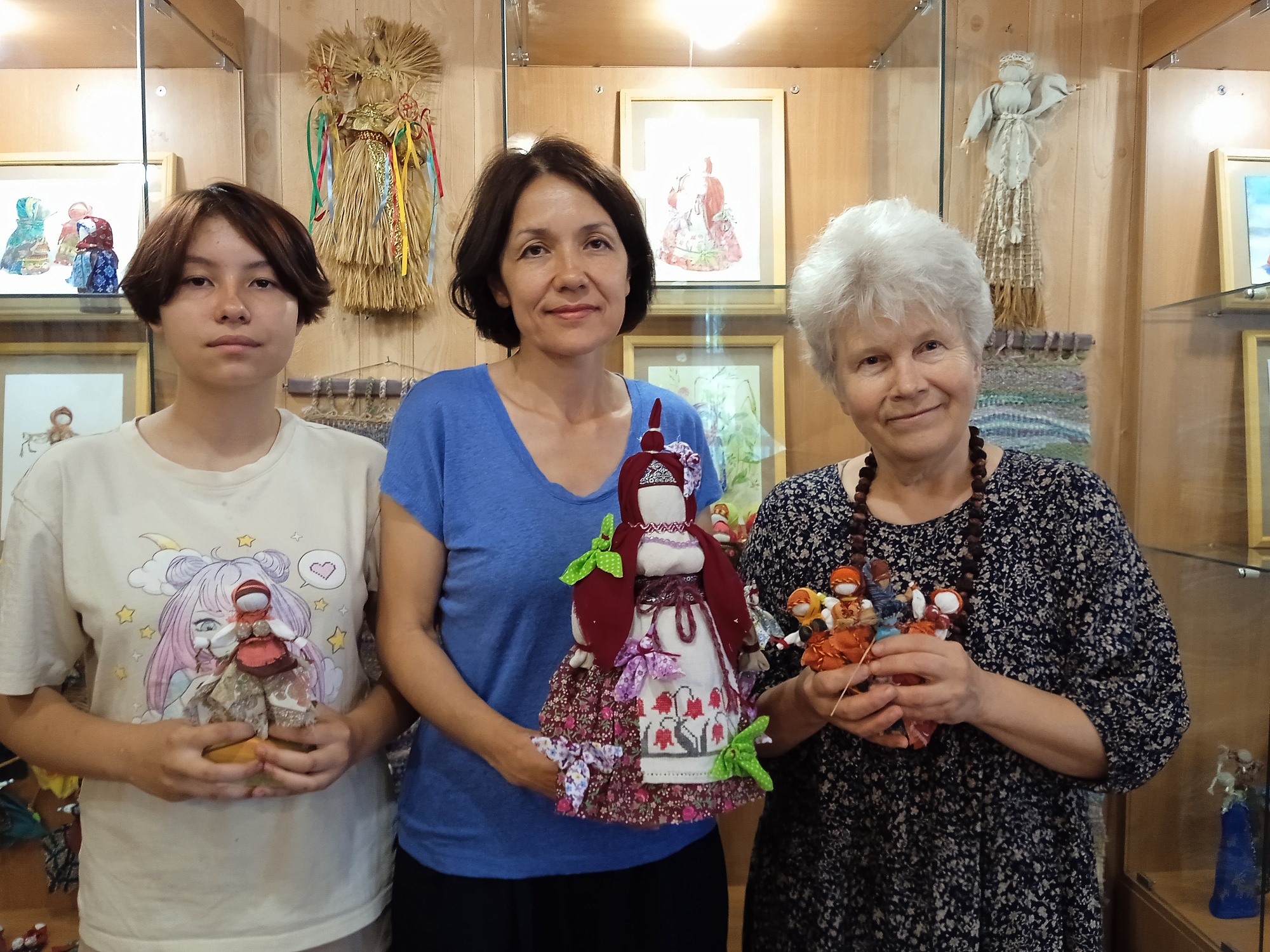 Одна из самых молодых участниц «Разноцвета» – ученица школы № 45 Соня Бушуева, дочь мастерицы Алины Бушуевой. Кукол девочка научилась делать на мастер-классах, которые проводит Вера Москалева, а отдыхая в летнем детском лагере, создала куклу «Капустку», которая сворачивается из трех кусочков ткани, и представляет ее сегодня на выставке.