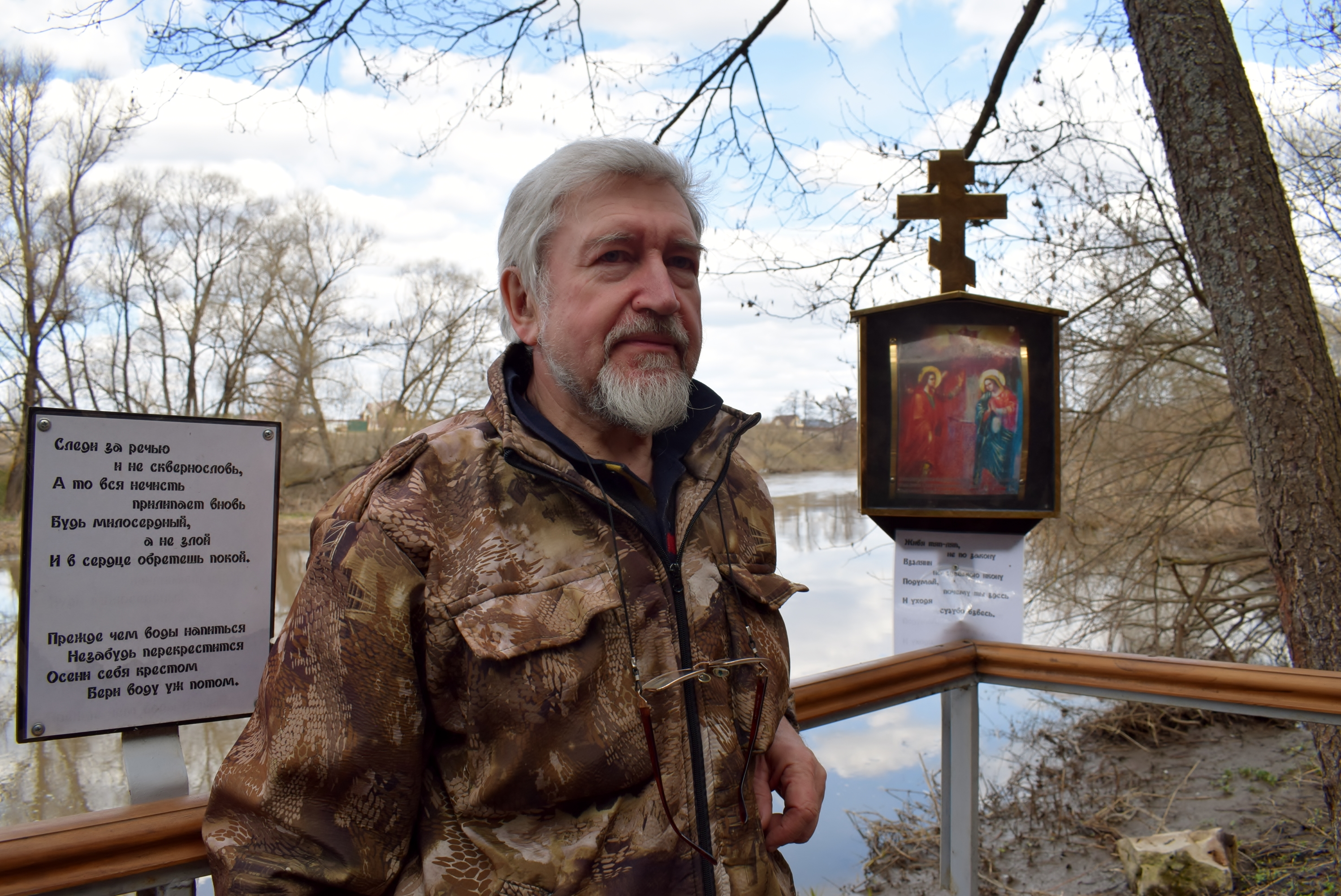 Николай Афанасьевич оказался в Истомино впервые лет десять назад. Почти случайно, хотя в случайности он, конечно, не верит. Начал ездить сюда с семьёй, на службы в Успенский храм, из соседнего Ферзиковского района. По пути останавливался, чтобы набрать родниковой воды. На другую сторону речки от ключа перекинута труба, и можно было бы подъехать и туда, но это очень неудобно. Как и все, опирался на оглобли, вбитые в землю, и переживал, что спускаться под обрыв тяжело, особенно зимой – люди здесь падали и даже получали травмы.
