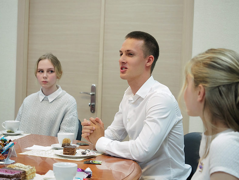 В ходе беседы, прошедшей за чаем со сладостями, министр поздравил школьников и их наставников с успехом и пожелал новых побед.