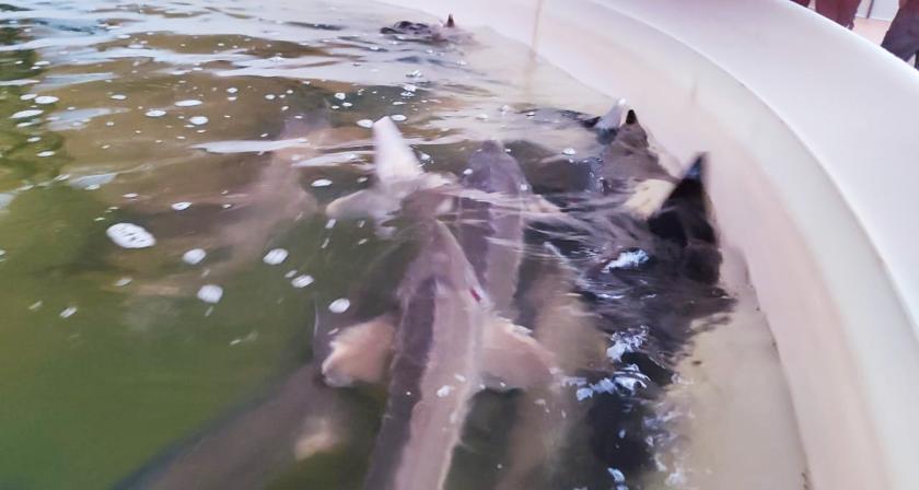 Так в обычном с виду ангаре появились огромные белоснежные емкости, наполненные водой. Со знанием дела Николай объяснил, что главное условие выращивания царской рыбы – это очистка воды по технологии УЗВ (устройства замкнутого водоснабжения). Суть ее в том, что вода в резервуарах с рыбой не меняется постоянно, а очищается при помощи фильтров и обогащается подаваемым кислородом. Это снижает расходы не только на саму воду, но и на ее подогрев, что очень важно в суровое зимнее время. Большое значение также имеют поддержание заданных параметров воды и воздуха в помещениях, кормление в строго определенное время. Соблюдение всех этих нюансов и позволило вырастить осетров уже до приличных размеров.В бассейне-питомнике созданы идеальные условия, чтобы мальки росли практически круглый год. Температура здесь поддерживается на уровне 20-22 градусов, соблюдается необходимый световой режим, в автоматическом режиме выделяется достаточное количество пищи.