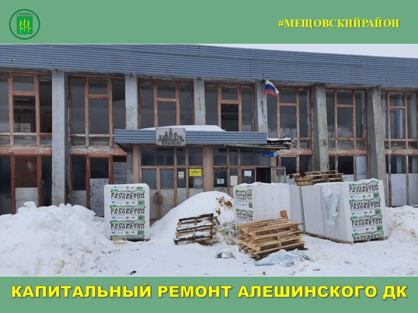 В конце февраля был подписан муниципальный контракт на капитальный ремонт алешинского Дома культуры в рамках федерального проекта «Культурная среда». На эти цели выделили 15 миллионов рублей. Калужские строители из ООО СК «Бастион» приступили к работе.