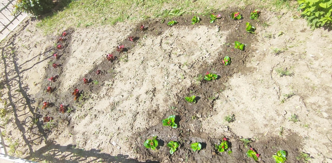 В рамках реализации проекта «Сад памяти» цветочные «геоглифы» высадили у образовательной организации члены социально-педагогического отряда «Ровесник» в качестве символов поддержки наших воинов, участвующих в специальной операции на Украине.
