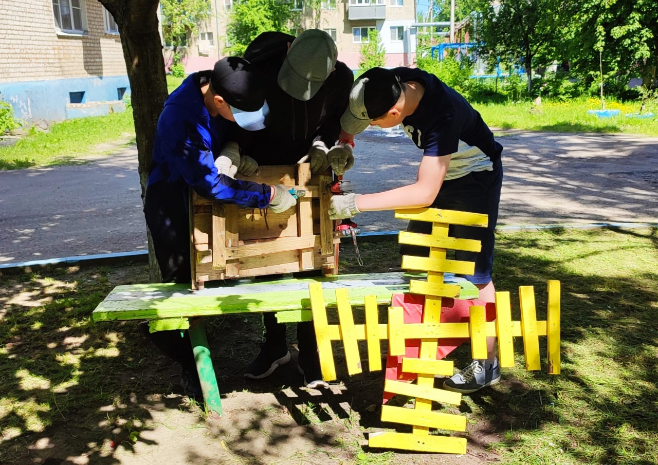С первых дней лета 15 ребят в возрасте от 14 до 16 лет трудятся на базе Дома творчества по программе временной занятости. Они занимаются благоустройством территории вокруг Дома творчества с применением ландшафтного дизайна. Ребята из разных объединений под руководством Ольги Грибковой и Натальи Корнеевой восстановили и подкрасили элементы тихих зон для отдыха, восстановили игры на асфальте, украсили клумбы. А ещё волонтеры отряда «Ровесник» реализовали проект «Сад памяти» – высадили цветы в форме букв Z и V, ставших символами поддержки наших воинов, участвующих в специальной операции на Украине.