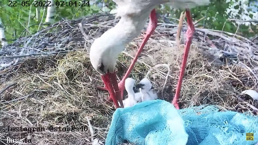 В пятницу, 20 мая в 9 часов вечера у калужских аистов Стёпы и Стеши появился первый птенец. Этой милой новостью поделились зрители канала в группе «ВКонтакте» «Гнездо аистов онлайн». А в субботу в сообществе появилось видео, где аист приносит своим птенцам тряпочку, чтобы укрыть их от ветра и дождя.