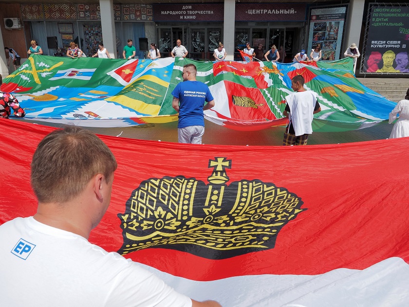 Сегодня, 5 июля, Калужское региональное отделение партии «Единая Россия» совместно с рядом молодежных общественных организаций развернули возле кинотеатра «Центральный» флаг Калужской области.