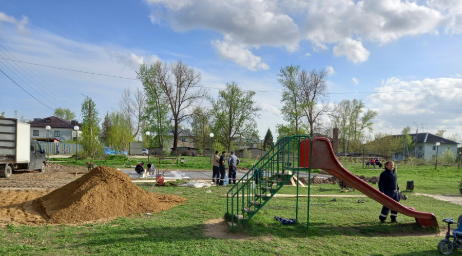 В настоящее время специалисты подрядной организации занимаются армированием основания площадки. Уже проведена вертикальная планировка, сделана отсыпка песчаной и гравийной «подушки».