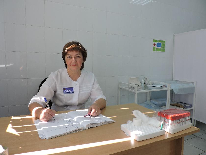 Основной ее задачей является выполнение назначений врачей, всех лечебно-диагностических мероприятий: забор крови из вены для диагностических исследований (биохимический, на группу крови и резус-фактор, на антитела, гормоны и онкомаркеры, на ВИЧ и RW), введение лекарственных веществ – внутривенные и внутримышечные инъекции. Каждое утро в половине восьмого открывается дверь ее процедурного кабинета. Очередь выстраивается быстро. До десяти утра нужно успеть взять кровь на анализ у пациентов, затем Елена делает подкожные, внутривенные и внутримышечные инъекции, назначенные врачами. И, конечно же, за ней закреплено оформление реестров на отправку крови в Калугу и ведение документации.