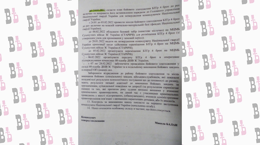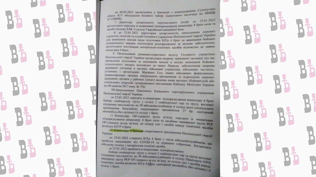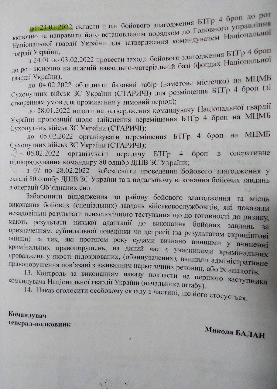 Заместителю командующего нацгвардией по кадрам приказано организовать «действенную систему морально-психологического обеспечения батальонно-тактической группы 4-й бригады оперативного предназначения, внутреннюю коммуникацию командиров с подчинёнными, информирование»;