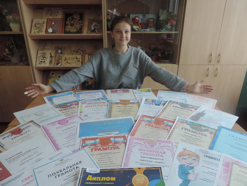 – В олимпиадах участвует третий год и уже с 7-го класса является победителем муниципального этапа по нескольким предметам, – говорит ее учитель Людмила Чугунова. – Сабина – девочка очень творческая и активная. Она с интересом участвует во многих школьных, муниципальных и региональных мероприятиях и постоянно занимает в них призовые места. Такими стали конкурс чтецов «Живая классика», Всероссийский конкурс сочинений, конкурс чтецов «Природа – источник вдохновения», конкурс «Поэзия есть высший вид искусства», конкурс творческих работ «Территория творчества. Фанкфишн – сочинение для тех, кто не хочет расставаться с литературными героями», и здесь она стала лауреатом всероссийского уровня.