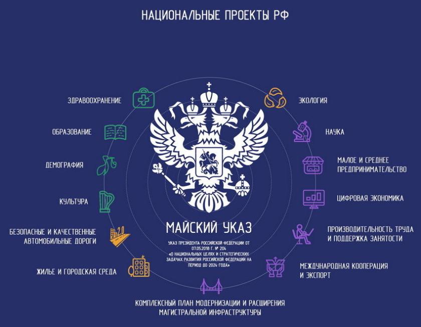 Национальные проекты – система мер, предпринимаемых государством для улучшения социальной и экономической ситуации в РФ, а также повышение качества жизни и возможностей самореализации для всех граждан страны. Решение о реализации данных проектов принято в 2018 году в соответствии с указом президента Российской Федерации.