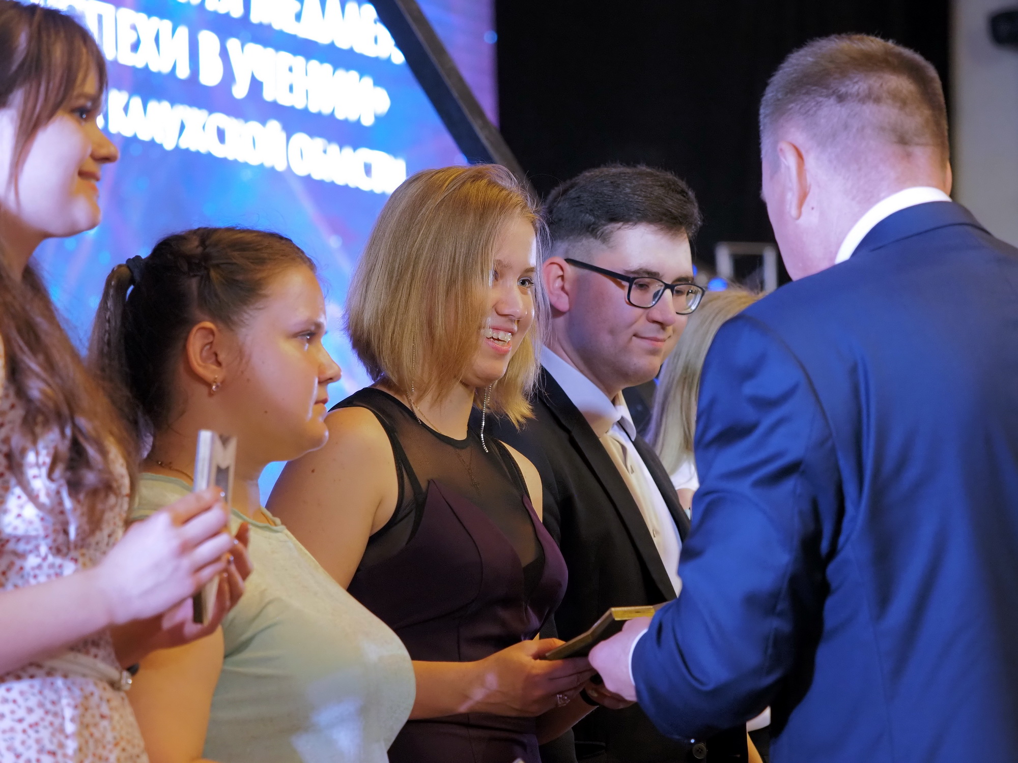 И если разноцветные пригласительные в начале мероприятия сложились в руках ребят в российский триколор, то вручённые медали в «звёздных» ложементах-светильниках загорелись в финале награждения как звёзды единой Галактики – Галактики выпускников Калужской земли.