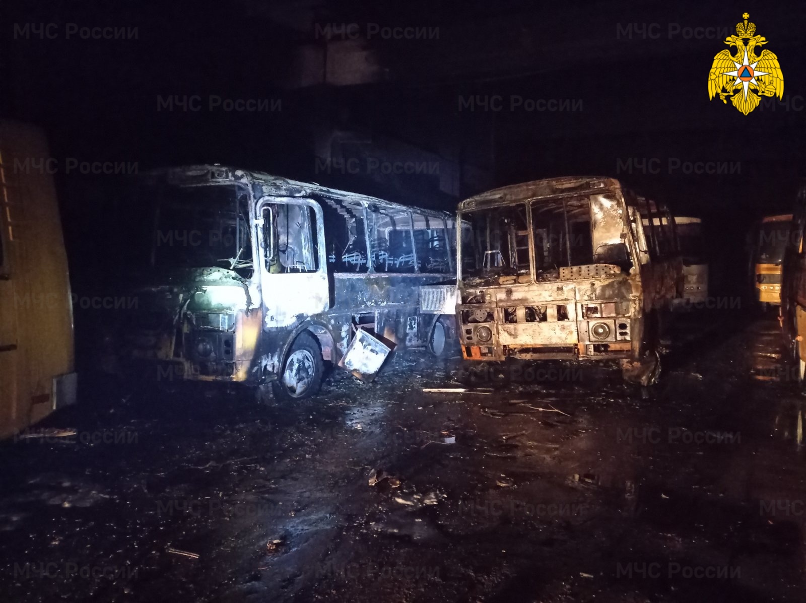 Сообщение о возгорании поступило службу спасения около трех часов ночи. Звонивший сообщил, что на улице Маяковского горит ангар теплой расстановки транспорта. На место происшествия для ликвидации пожара прибыли пять расчетов и 19 огнеборцев. Как сообщили в пресс-службе регионального МЧС, в пожаре люди не пострадали, однако огнем полностью уничтожены несколько автобусов ПАЗ. Причины возгорания устанавливаются, сейчас на месте работает инспектор государственного пожарного надзора.