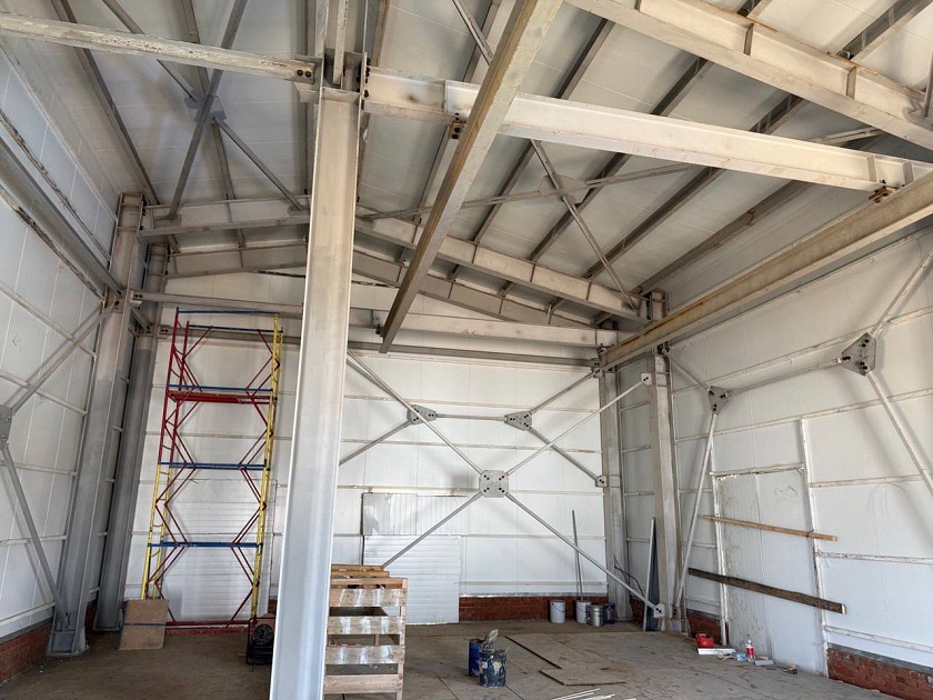 Специалисты уже обустроили кровлю и цоколь здания, установлены окна и двери, смонтировали пожарные резервуары. Продолжаются по графику отделочные работы и выполняется огнезащита металлоконструкций, обустраивается наружное электроснабжение, создаются иловые карты, биореакторы и ведется обсыпка КНС.