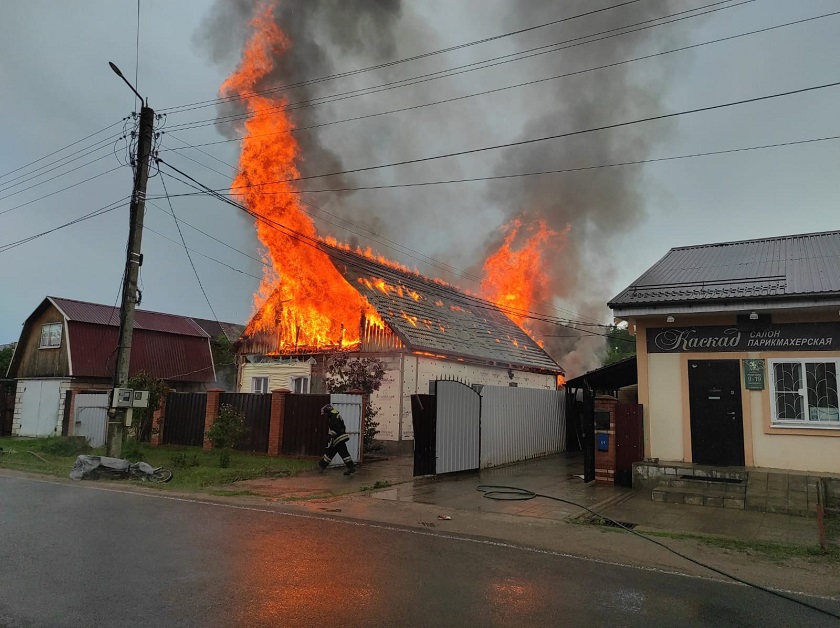 На месте работают расчёты пожарных частей Балабанова, Боровска и Обнинска. Есть угроза соседним строениям.