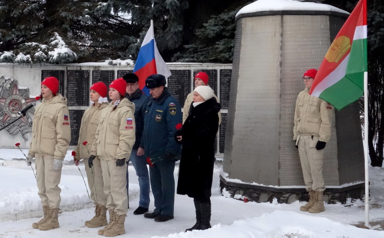Память воинов, павших на полях сражений, почтили минутой молчания. Митинг закончился возложением цветов к мемориалу.