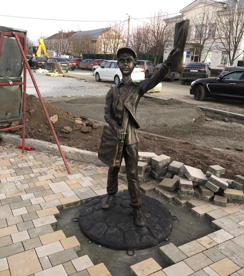 Скульптура мальчика-разносчика газет должна была появиться на центральной площади райцентра еще в сентябре, к 100-летнему юбилею районной газеты «Боровские известия». Но ремонт площади затянулся. И памятник установили только сейчас. Об этом сообщил РИЦ «Боровский район». Скульптура стала своего рода подарком изданию и городу от Районного информационного центра.