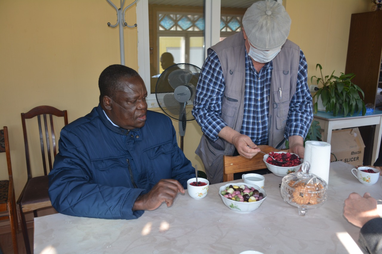 Посол республики Уганда продегустировал напиток из сублимированных ягод и конфеты, изготовленные по авторскому рецепту и попробовал русский винегрет.