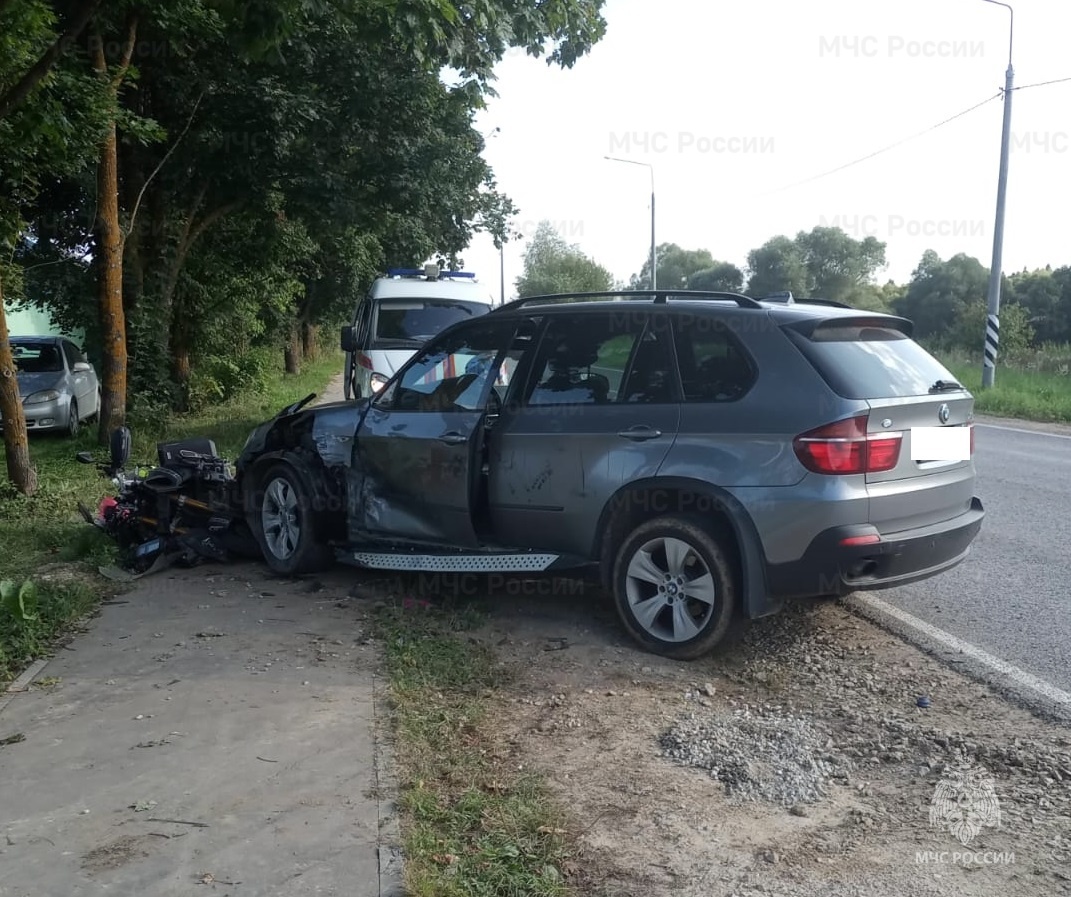 Вечером во вторник, 27 августа, в деревне Тимашово на улице Центральной столкнулись автомобиль «БМВ» и мотоцикл «Ямаха». Об этом сообщила пресс-служба регионального управления МЧС.