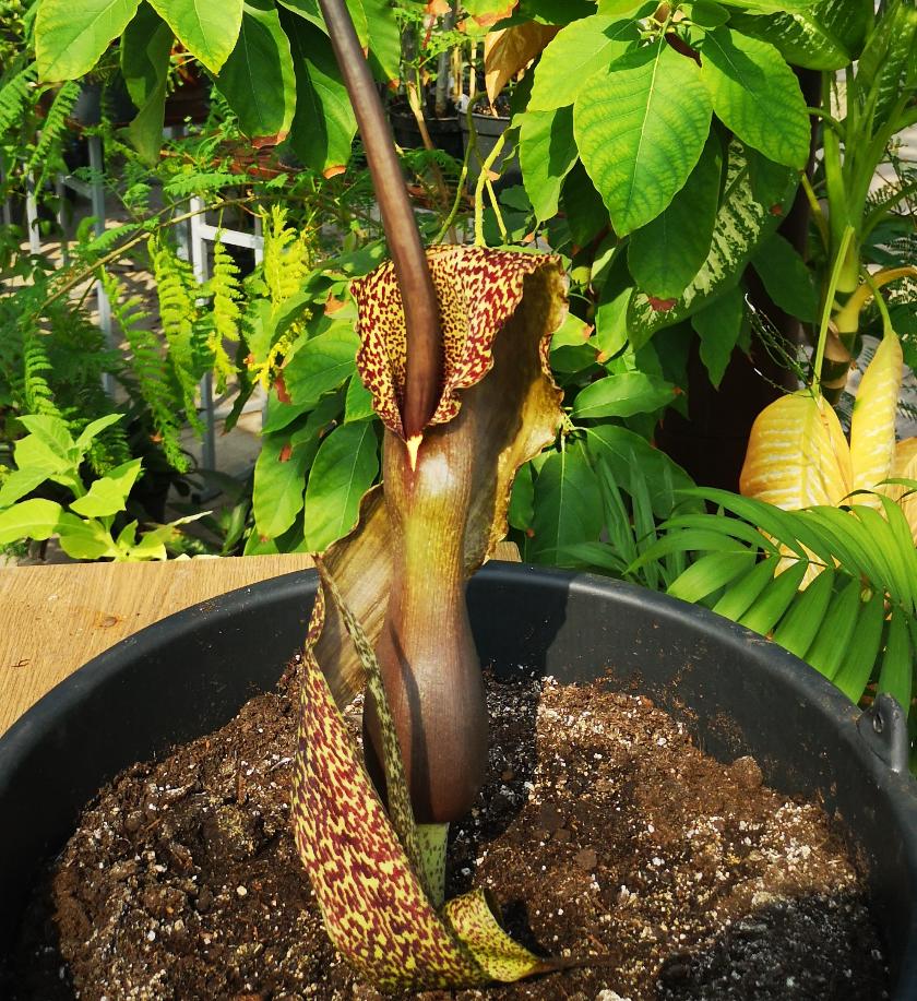 - Нельзя сказать, что это очень редкое растение, но его цветение - всегда событие. Во-первых, оно происходит не каждый год. Сам цветок крупный, до 70 сантиметров в высоту, и растению нужно время, чтобы восстановить силы. А во-вторых, уж очень необычная форма цветка и его «аромат», которые далеки от эталонов ботанической красоты. Запах – резкий, гнилостный. В общем, вся гамма ароматов, которая привлекает основных его опылителей – мух. Живет цветок всего 2-3 дня, - отметил Евгений Константинов.