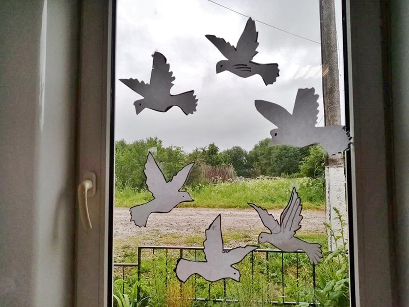 Накануне праздничного дня окна сельских домов культуры украсили силуэты белых голубей. Маленькие символы мира — фигурки голубя из бумаги стали частью Всероссийского флешмоба «Голубь мира».