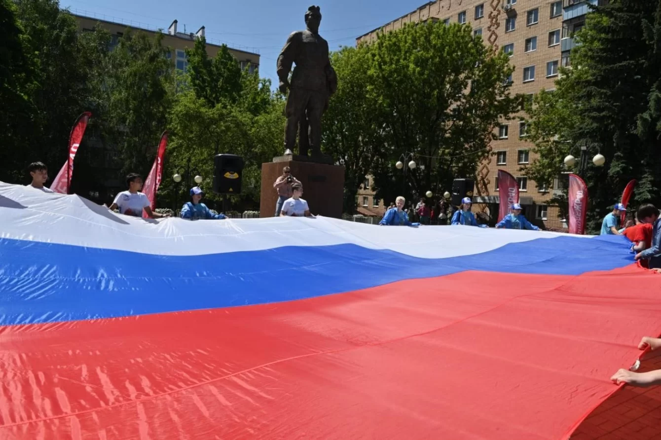 Флаг доставили участники автопробега по улицам города, который ежегодно проводят члены и сторонники партии «Единая Россия», сообщает портал «Весть».