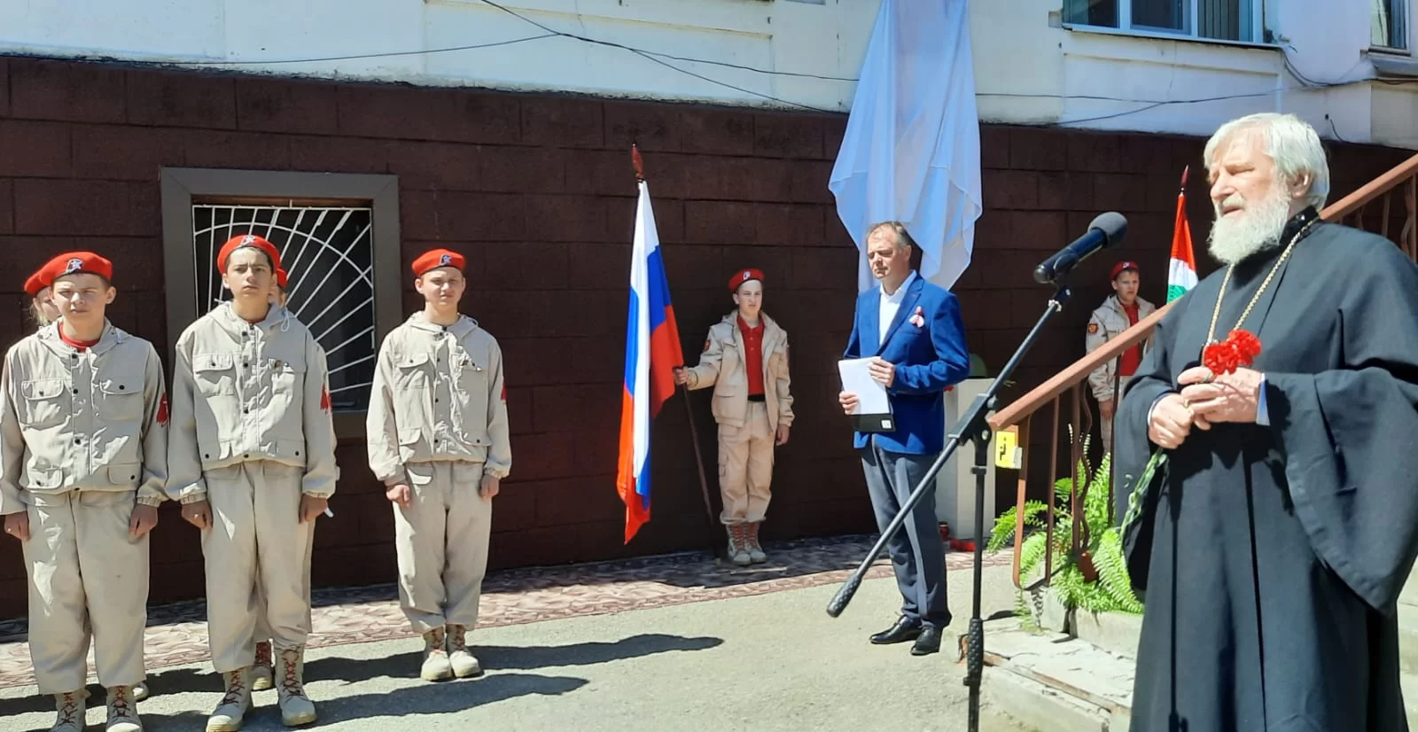 Ребята-юнармейцы из отрядов «Патриоты» и «Ефремовцы», только что принявшие присягу, встали у мемориальной доски почётным караулом. К портрету героя легли цветы.