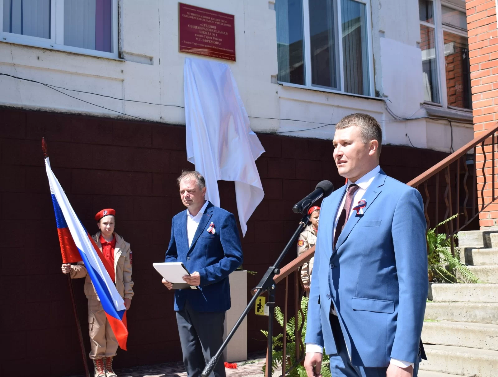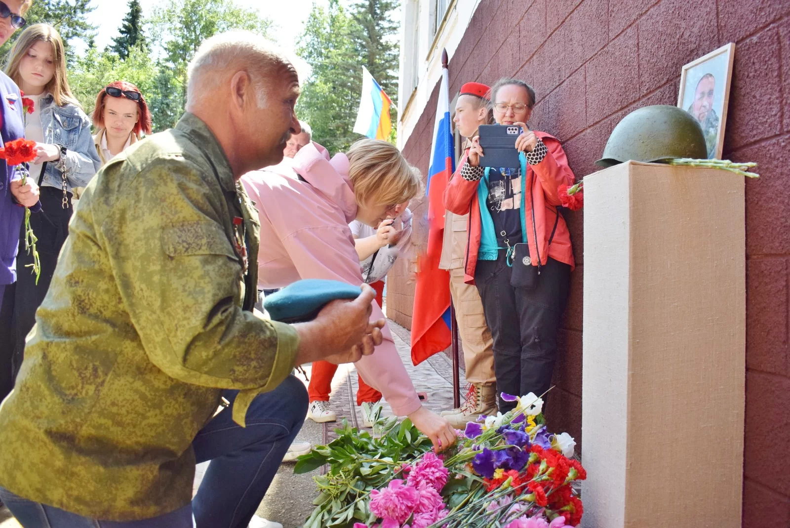 Ребята-юнармейцы из отрядов «Патриоты» и «Ефремовцы», только что принявшие присягу, встали у мемориальной доски почётным караулом. К портрету героя легли цветы.